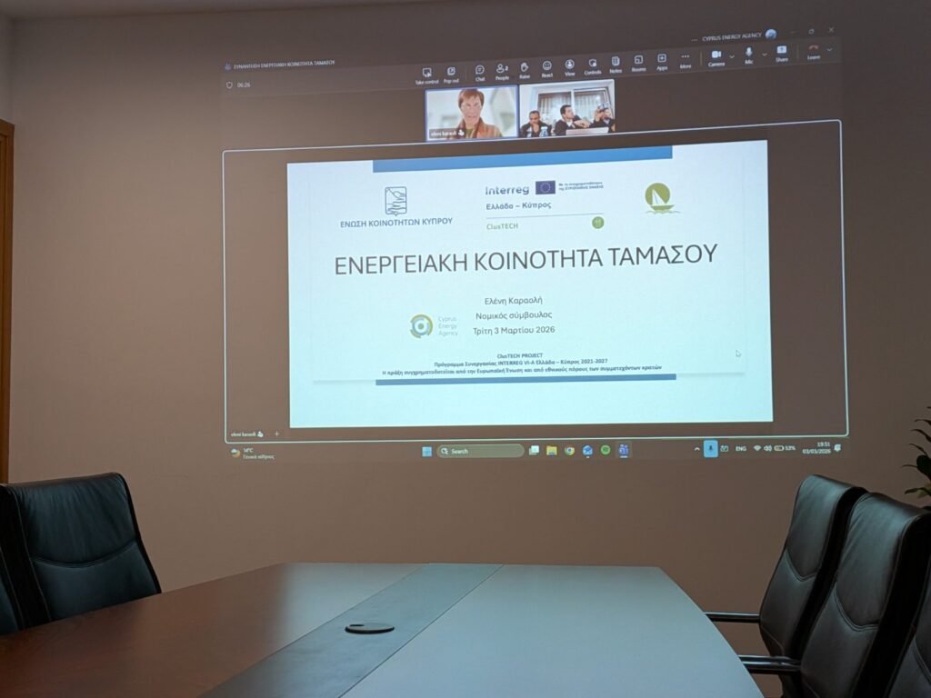 Οι Κοινοτάρχες του Συμπλέγματος Κοινοτήτων Ταμασού, προχωρούν με τη σύσταση Ενεργειακής Κοινότητας. Οι Κοινοτάρχες του Συμπλέγματος σε πρόσφατη συνάντηση τους, αφού έλαβαν υπόψη τους τα πολλά οφέλη που μπορούν να προκύψουν από τη σύσταση ενεργειακής κοινότητας, συμφώνησαν όπως προχωρήσουν με τη σύσταση της Ενεργειακής Κοινότητας Ταμασού και έδωσαν εντολή στην Ένωση Κοινοτήτων Κύπρου και στο Ενεργειακό Γραφείο Κύπρου να προχωρήσουν με τις διαδικασίες που απαιτούνται για τη σύσταση της.